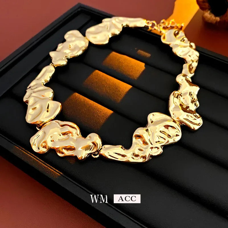 Collar dorado ultra chic inspirado en tendencias cosmopolitas, ideal para looks frescos.